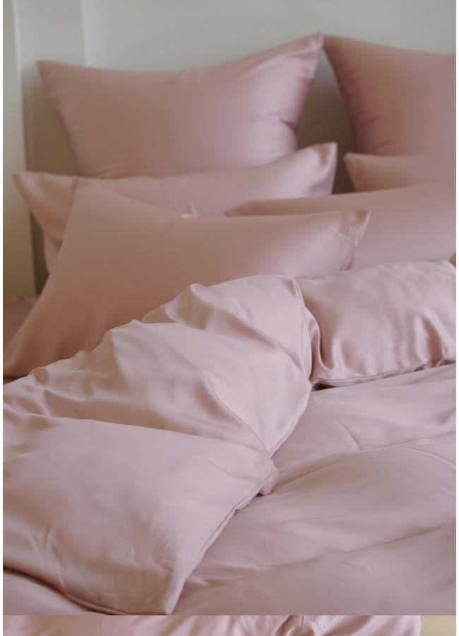 Постельное белье тенсель "БРИЛЛИАНТ" розовый Семейный простыня на резинке, GERMAN GRASS