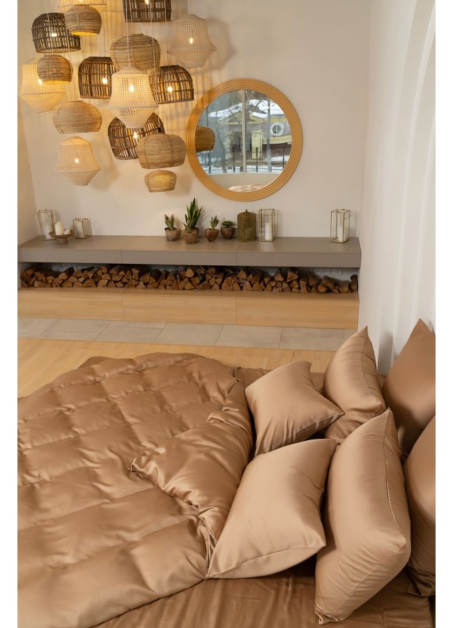 Постельное белье тенсель "БРИЛЛИАНТ" песочный Семейный простыня на резинке, GERMAN GRASS