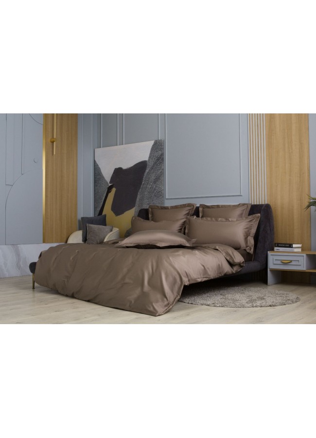 Постельное белье хлопок "АЛЛЮР" молочный шоколад Семейный простыня на резинке, GERMAN GRASS